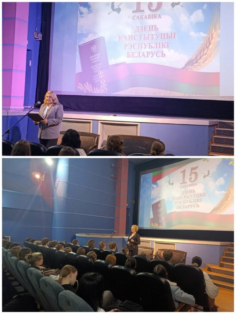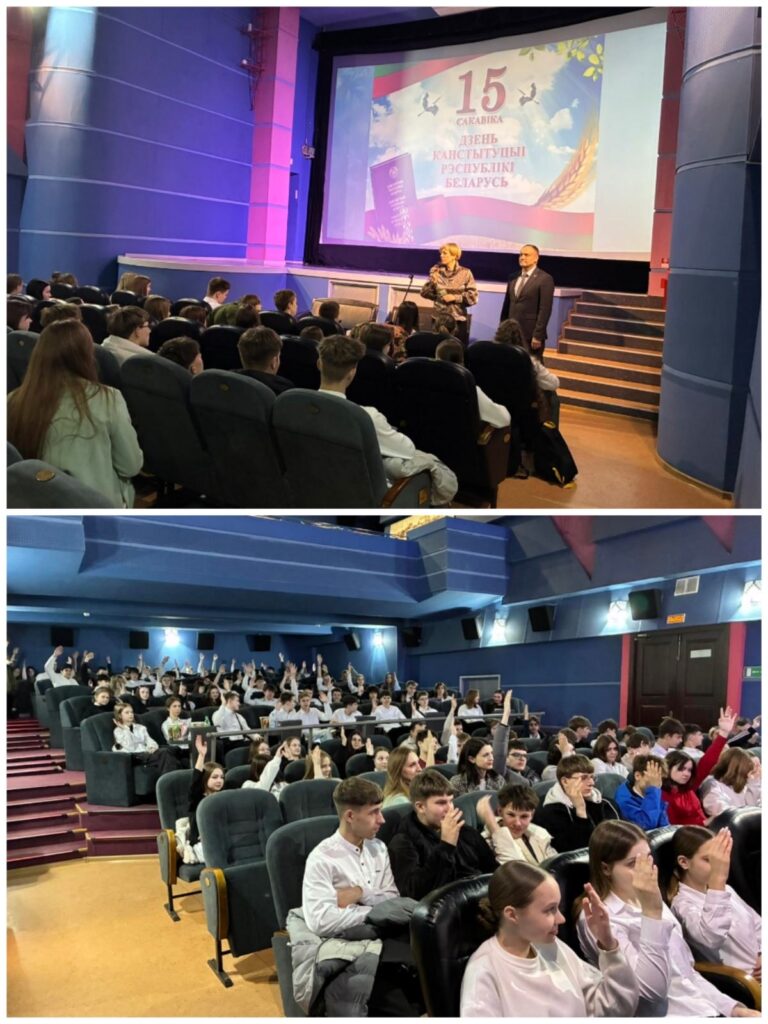 В связи с этим, последние несколько лет на базе кинотеатра «Красная звезда», совместно с представителями Гродненского областного суда, Суда Гродненского района, а также Судов Ленинского и Октябрьского районов г. Гродно, проходит серия видеомероприятий, посвященных основам Конституции для учащихся средних школ нашего города – «Конституция моей страны».
