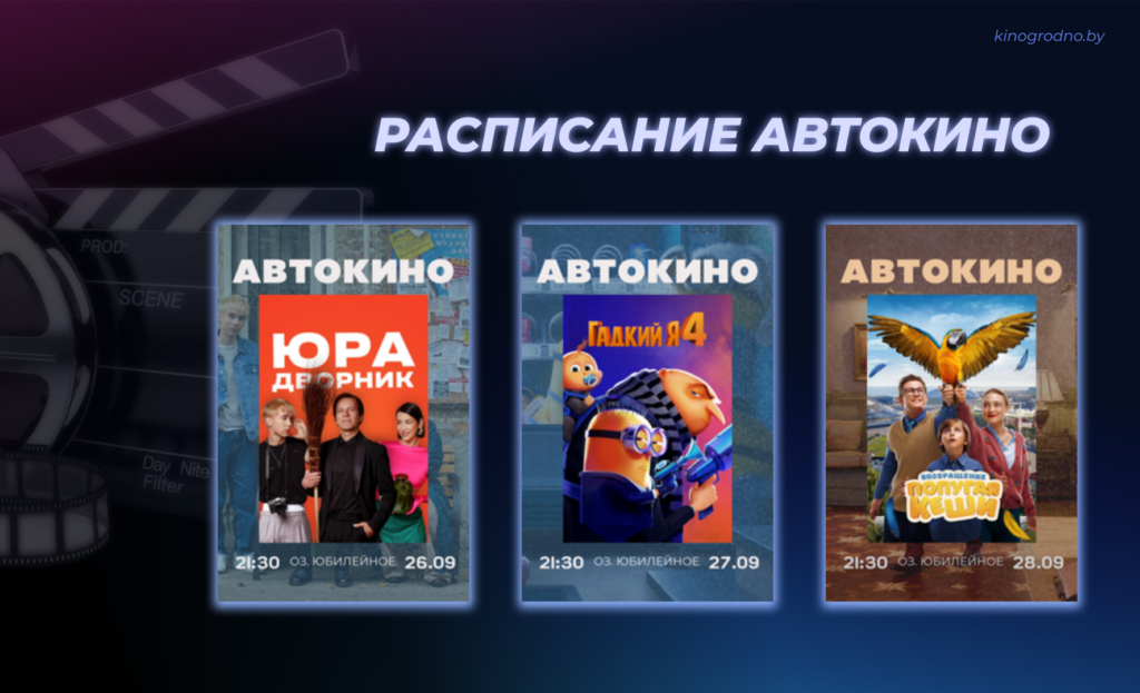 Приглашаем вас на последние показы этого сезона. Не упустите возможность провести вечер в компании любимых героев и захватывающих сюжетов, наслаждаясь свежим воздухом, создавая новые воспоминания и прощаясь с автокино до следующего года.
