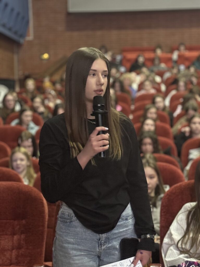 Разговор о здоровье девочек взяли на себя специалисты центров дружественных подросткам “Контакт” и ” Твоё время” г.Гродно. Вопросы звучали серьёзные — половая неприкосновенность, эмоциональное равновесие, аутодеструктивное поведение, — но ответы были живыми и бережными. Девушки могли задать свои вопросы анонимно, через специальный “Анонимный бокс”.
