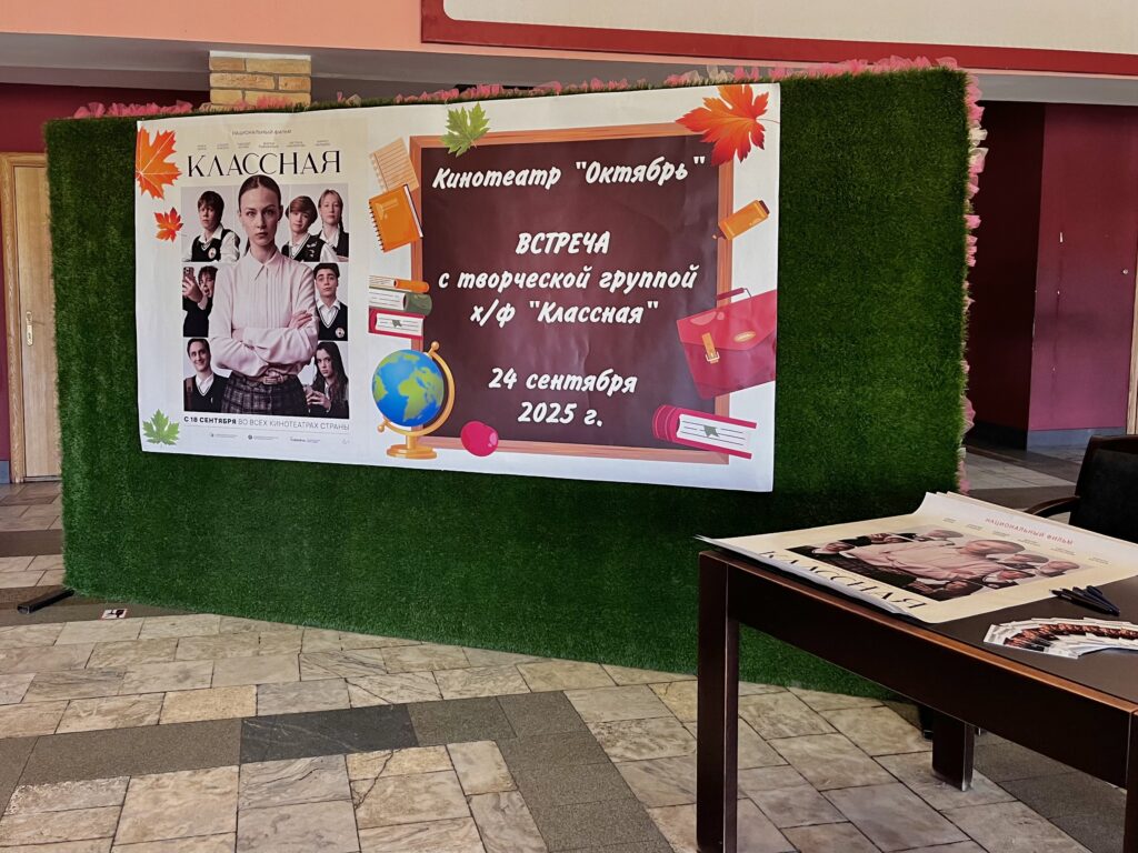 24 сентября в кинотеатре «Октябрь» состоялась встреча с творческой группой фильма “Классная” РУП «Национальная киностудия «Беларусьфильм». В составе творческой группы в кинотеатр «Октябрь» прибыли: режиссер фильма – Кирилл Халецкий, исполнительница главной роли – Ирина Мороз, исполнительница роли завуча – Светлана Никифорова и исполнитель роли Димы – Максим Заложук.