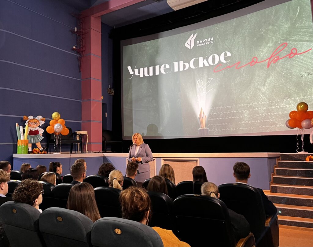 Елена Пасюта упомянула о том, что с 25 сентября партия «Белая Русь» запускает проект «Учительское слово», приуроченный ко Дню учителя. Его цель – создать атмосферу душевных, содержательных встреч в педагогических коллективах, где будут вспоминать историю развития школ, традиции, а также тех, кто стоял у истоков создания учительских сообществ. Особое внимание в рамках проекта будет уделено ветеранам педагогического труда.