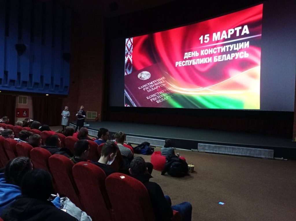 В кинотеатре «Октябрь» с 11 по 18 марта прошла тематическая неделя, посвященная Дню Конституции Республики Беларусь. В рамках кинолектория «Мы – граждане Беларуси» для учащихся учреждений образования в 6-ой школьный день демонстрировался документальный фильм «Конституция моей страны». 15 марта, в день празднования Дня Конституции Республики Беларусь, перед учащимися УО «Гродненского государственного колледжа отраслевых технологий», УО «Гродненского государственного колледжа строительных технологий», УО «Гродненского колледжа экономики и управления» Белкоопсоюза, УО «Гродненского государственного училища олимпийского резерва» выступила Зинаида Ивановна Барцевич, председатель суда Октябрьского района города Гродно. На встрече обсудили структуру Конституции Республики Беларусь, порядок внесения в нее изменений и поправок, помимо этого были озвучены и основные положения проекта обновленной Конституции. В конце мероприятия были продемонстрированы документальный фильм «Конституция моей страны» и художественный фильм «Нюрнберг».