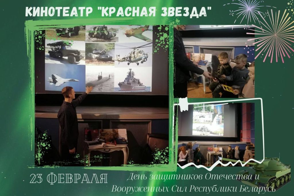На этой неделе работники кинотеатра «Красная звезда» провели для учащихся ряд мероприятий, в том числе и выездных, приуроченных ко Дню защитника Отечества, Вооруженных Сил Республики Беларусь и 105-летию Вооруженных Сил. На мероприятиях обсуждали, насколько важно отдать дань уважения всем поколениям, погибшим за Родину. В современных реалиях важно помнить свою историю. Идея проводимых мероприятий заключается в важном аспекте: чтобы стать защитником своей Родины – мало жить в ней, важно любить и уважать её. Каждый юноша должен отдать долг своей Родине, научиться защищать её, ведь сохранение безопасности своей страны всегда было делом чести, доблести и героизма. Учащиеся искренне признательны всем, кто освобождал нашу Родину. Они отдают дань уважения каждому ветерану. Вспоминали и о воинах-интернационалистах, мужественных сыновьях, которые погибли за свободу и независимость. Люди в погонах и сегодня защищают наш родной дом – Республику Беларусь. Именно они – настоящие патриоты своей Родины. Своей храбростью и смелостью подают пример молодому поколению. Патриотизм для учащихся является одной из важнейших моральных ценностей человека, определяющей его отношение к Родине, народу и государству. После беседы ребята с интересом поучаствовали в тематических викторинах, а самые активные участники получили памятные призы. Также присутствующих ознакомили и с небольшой тематической книжной выставкой, расположенной в холле кинотеатра «Красная звезда».